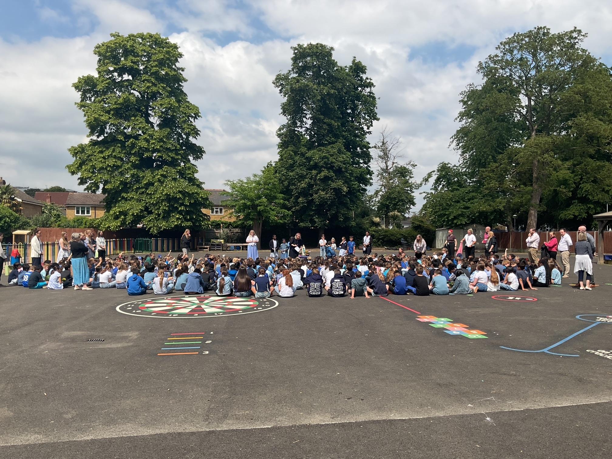 ‘God is not a stranger in the Catholic School and prayer is seen as an essential part of each school day, with the celebration of the Eucharist being the most important occasion for the whole school community to express its belief as a faith community.’